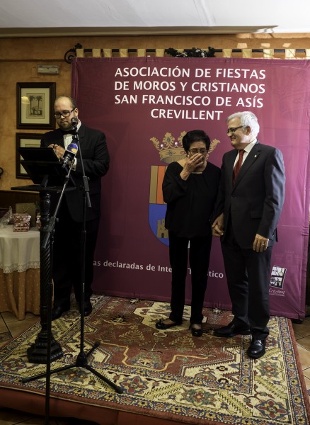 Destacar dentro del pequeño acto que viene realizándose estos últimos años, la entrega por parte del Ayuntamiento de Crevillent de la medalla a título póstumo de la Villa de Fontenay-Le-Comte a Paco Menchón por su labor durante 48 años al servicio del Jumelage y del hermanamiento de nuestra localidad con la villa francesa. Asimismo, también se le hizo entrega de la figura que simboliza la hermandad entre los pueblos y que recogió su viuda Toñi Javaloyes.