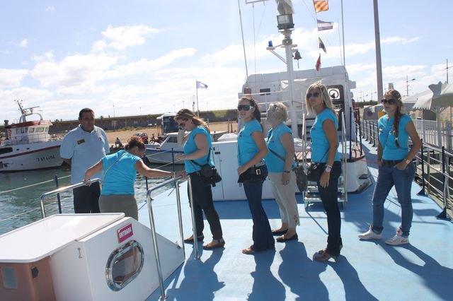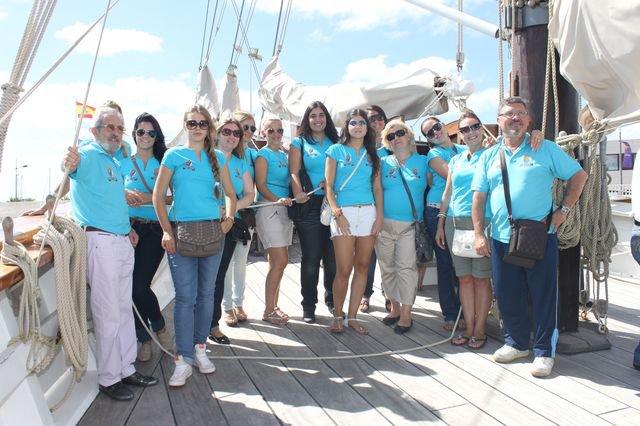 A partir de la 10.30 h. fueron recibidos en el puerto por Eduardo Dolón, concejal de Cultura y Fiestas, José Manuel Pizana, concejal de Juventud y Educación, Lola Sánchez, directora del Museo del Mar y de la Sal, y Rafael Aracil, encargado de los Museos Flotantes, los cuales fueron visitados. En primer lugar, el Patrullero Albatros, el Submarino Delfín S-61 y el Pailebote Pascual Flores. En este último se realizó la entrega de detalles, haciendo entrega la Asociación de los libros y carteles de fiestas de este año, y adquiriendo el compromiso de venir a desfilar el año que viene en el Desfile de la Reina de la Sal, que se volverá a recuperar después de unos años de ausencia. A continuación, nuestros representantes fueron a visitar la Sociedad Cultural Casino de Torrevieja, para finalizar en el Museo del Mar y de la Sal, donde fue Torrevieja quien hizo obsequio de un recuerdo.