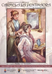 El próximo viernes 13 de enero a las 20:30 la compañia de teatro de la Asociación "Els Teatrer's" llevará a cabo en el Salón de Actos de la Casa Municipal de Cultura, la puesta en escena de la obra teatral "Carmela la Pentinaora".